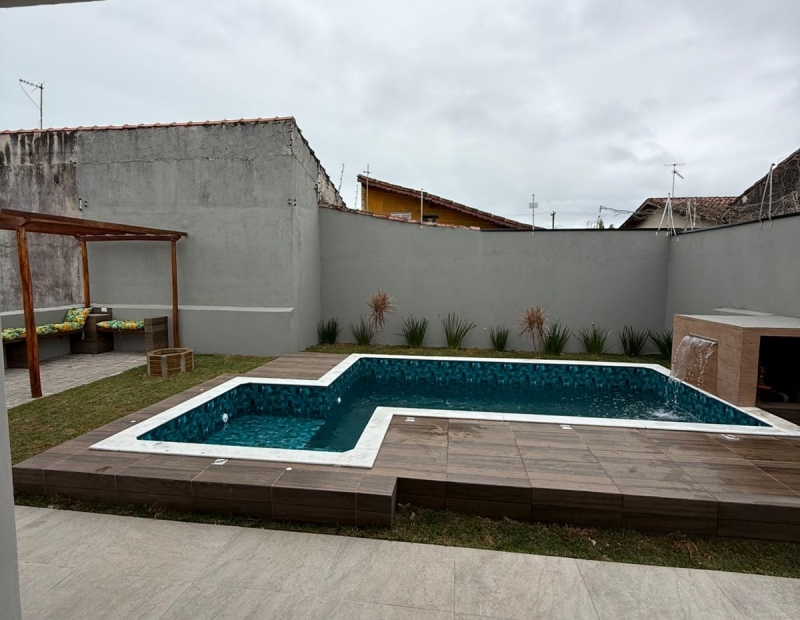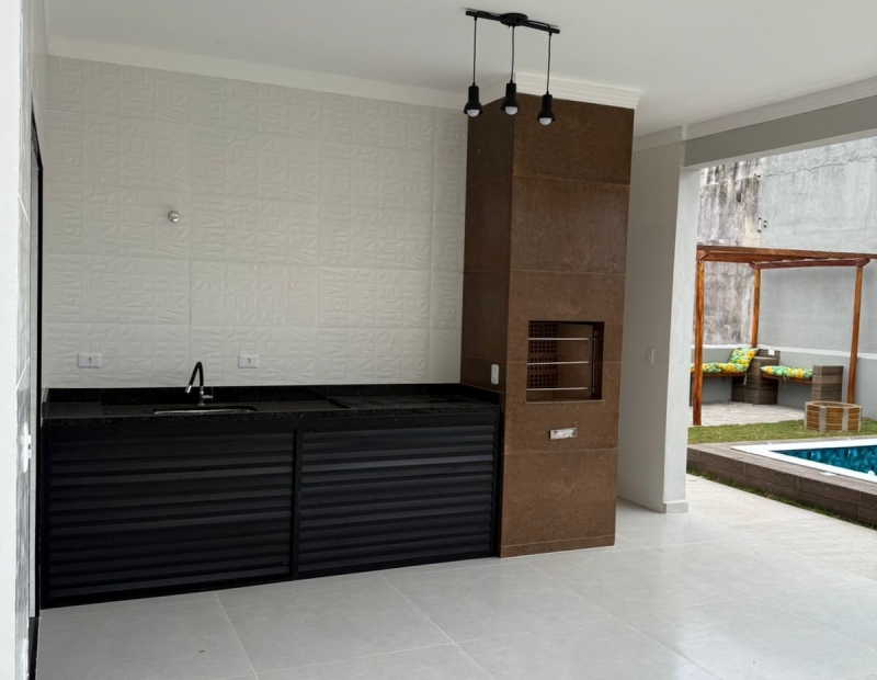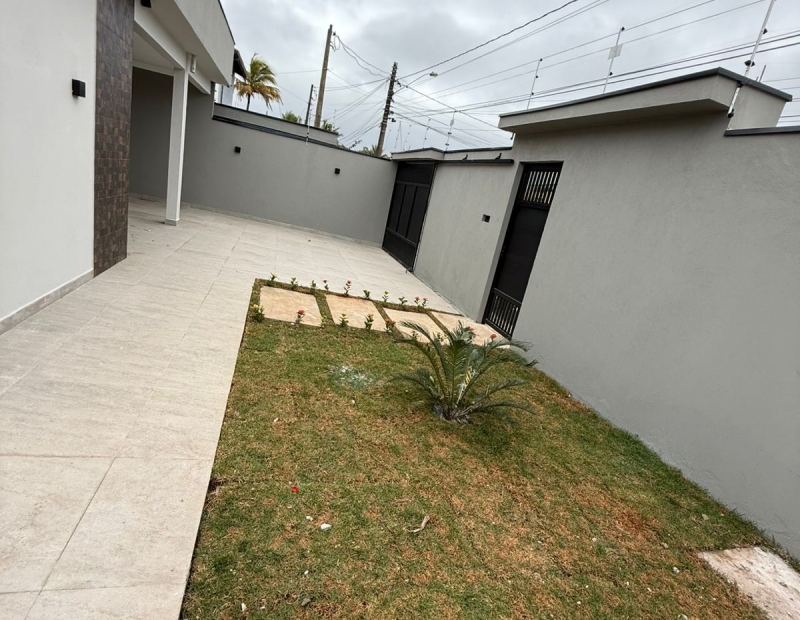 CASA COM ACABAMENTO EXCELENTE, LADO PRAIA, COM 3 DORMITÓRIOS, SENDO 1 SUITE, SALA AMPLA , COZINHA INTEGRADA, QUINTAL AMPLO, GARAGEM PARA 4 CARROS, ÁREA GOURMET COMPLETA.